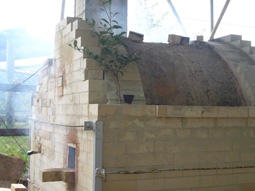 釉薬をかけ、炎の中へ。