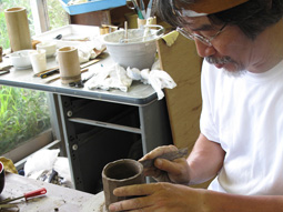 土をこね、一心不乱にかたちを作る。
